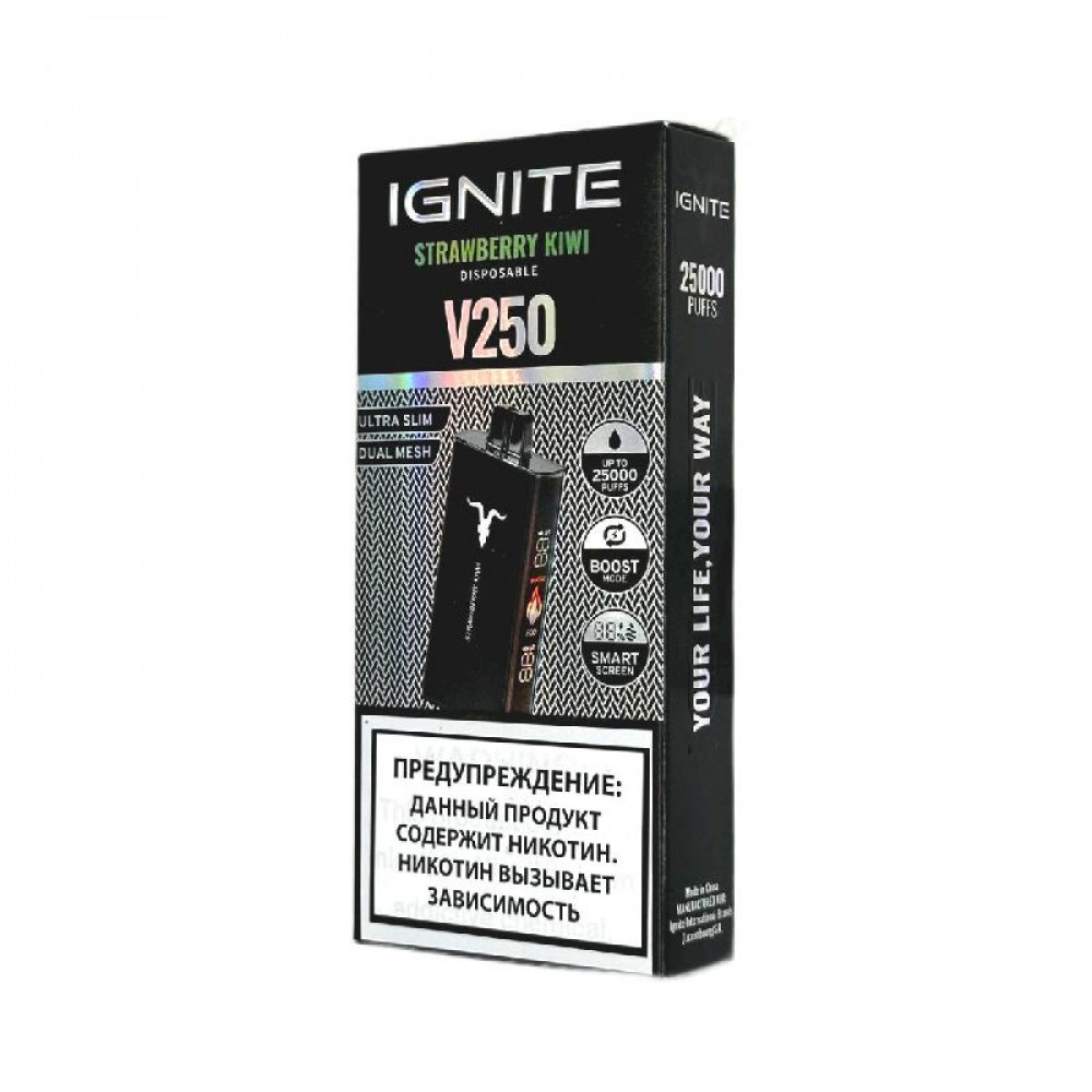 Электронная сигарета Ignite V250 Black 25000 - Strawberry Kiwi (Клубника киви) - купить в Тюмени